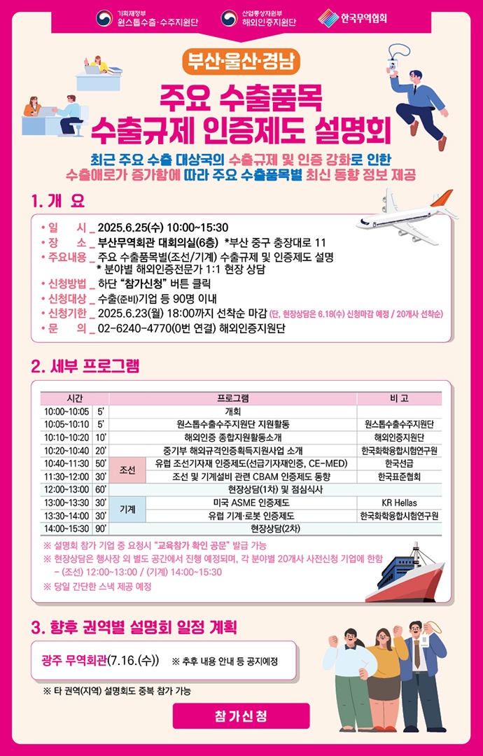 [마감][기획재정부 원스톱 수출수주지원단] 주요 수출품목 수출규제 인증제도 설명회 개최 안내 (부산·울산·경남)