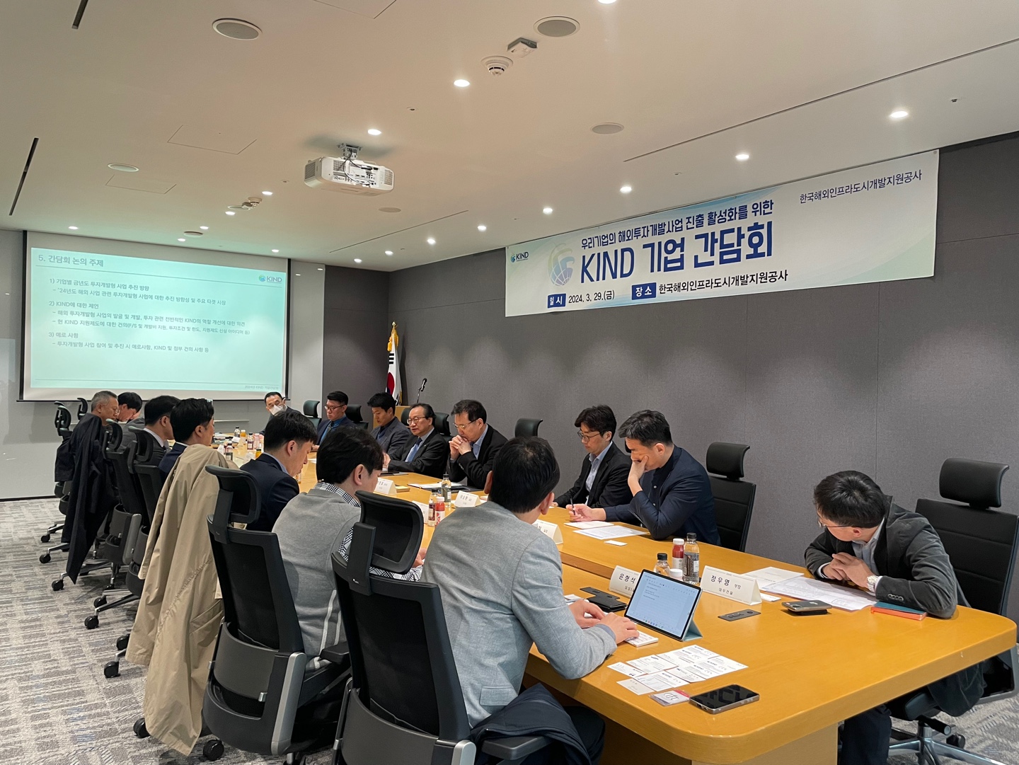 한국해외인프라도시개발지원공사(사장 이강훈, 이하 KIND)는 3월 29일 건설․엔지니어링 기업 관계자들과 해외 투자개발형 사업 활성화 방안 마련을 위한 「기업 간담회」를 개최하였다.