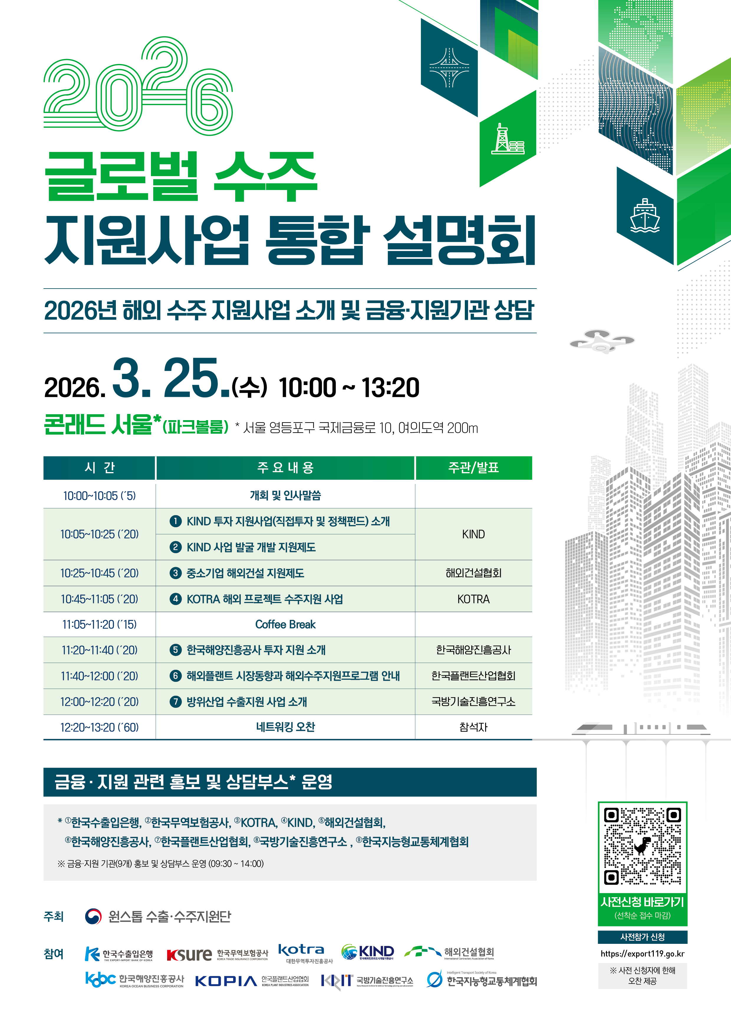 3. 내용 : 해외 수주 지원사업 소개 등 발표, 네트워킹, 금융 및 지원사업 관련 홍보 및 상담부스 운영