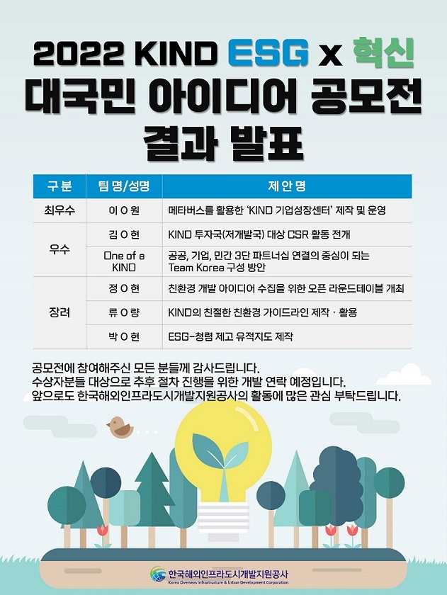 2022 KIND ESG x 혁신 대국민 아이디어 공모전 결과 발표